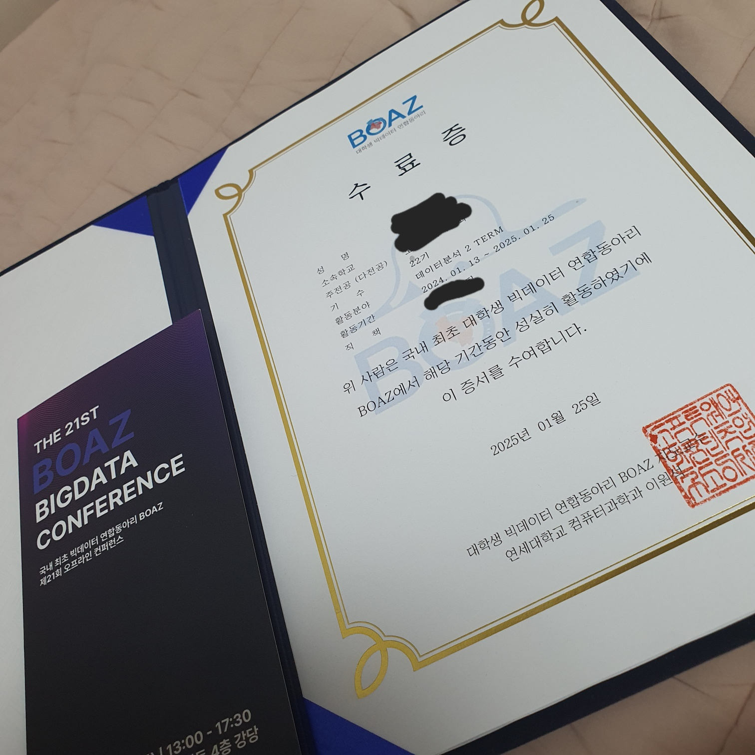 서론안녕하세요 오랜만에 돌아온 동아리 후기입니다.저는 올해 2월달에 1년간 BOAZ 데이터 분석 부문 BASE, ADV 활동을 무사히 수료했습니다. 이번에 25기 신입 기수를 모집한다고 하더라고요. 벌써 25기가 들어왔다는 설렘과 더불어서 제가 해왔던 활동을 블로그 형식으로 간단하게 정리하면 좋을것 같아서 이렇게 키보드 앞에 앉았습니다.저는 이 글을 통해서 여러분들이 다음을 얻어가길 바랍니다.1. BOAZ 동아리의 ADV 진행과정 파악2. BOAZ 동아리를 하면서 무엇을 얻어갈 수 있는가?3. 내가 과연 BOAZ 동아리와 맞을까?ADV 진행과정BASE 세션이 끝나고 나서 이제 본격적으로 ADV 진행을 위한 팀을 꾸릴 준비를 합니다.방학 첫주에는 자신이 누구인지, 어떤 분야에 관심을 가지는지 간단하게 소개..